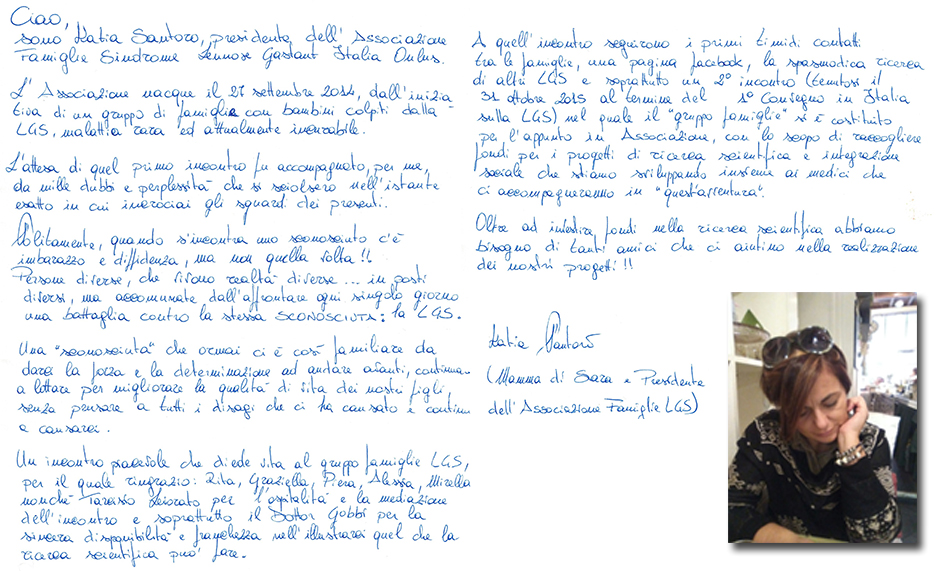 L’Associazione Famiglie LGS Italia è costituita da famiglie i cui figli sono affetti da una rara e grave forma di encefalopatia epilettica farmaco resistente a cui si associano un rallentamento dello sviluppo cognitivo e disturbi della personalità.